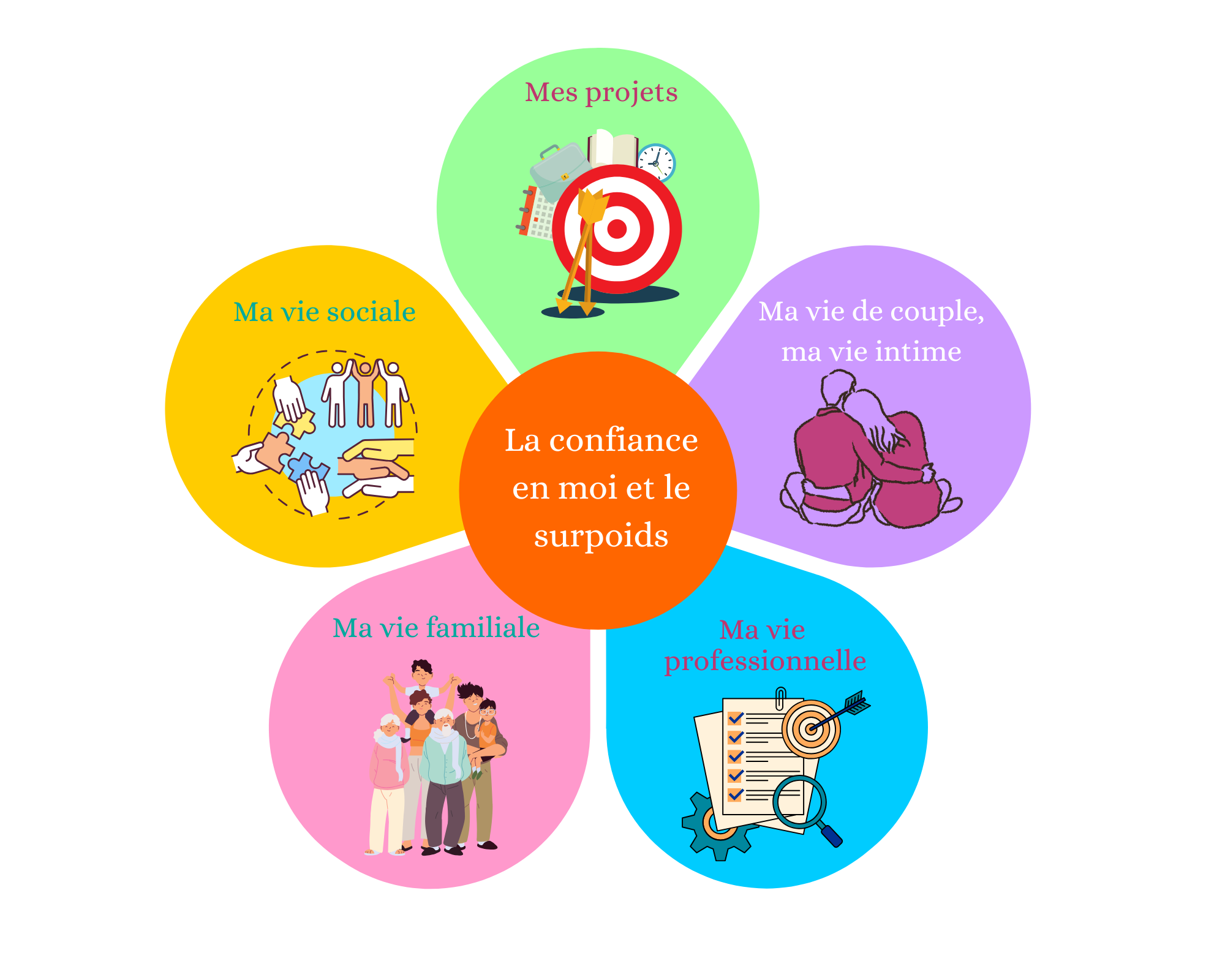 Sur une échelle de 0 à 5 (0 = pas d'impact / 5 = impact maximum), si vous estimez l'impact du surpoids dans votre vie, quelle serait la note pour vous dans chacun des domaines suivants ?